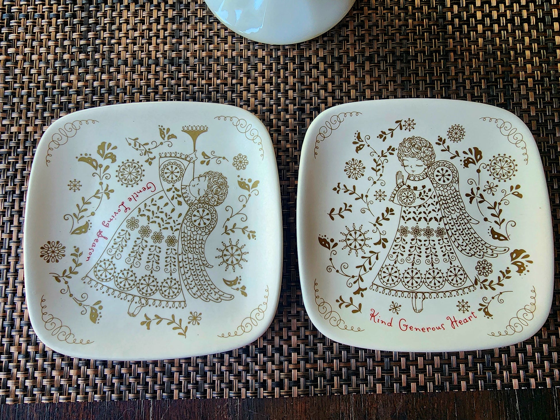2 Hallmark Decorative Square Plates with Gold Angel Design "Kind Generous Heart" and "Gentle Loving Season"