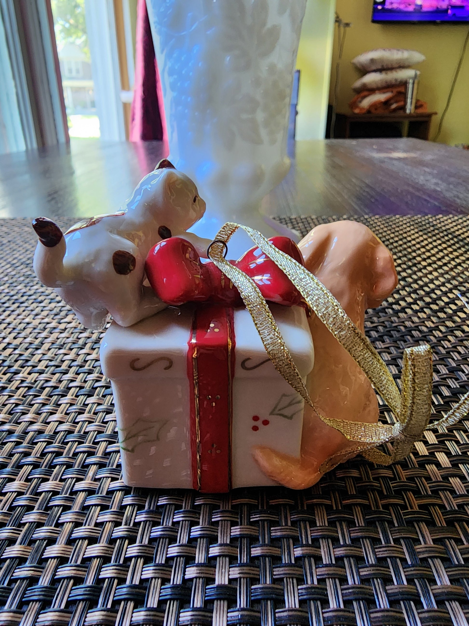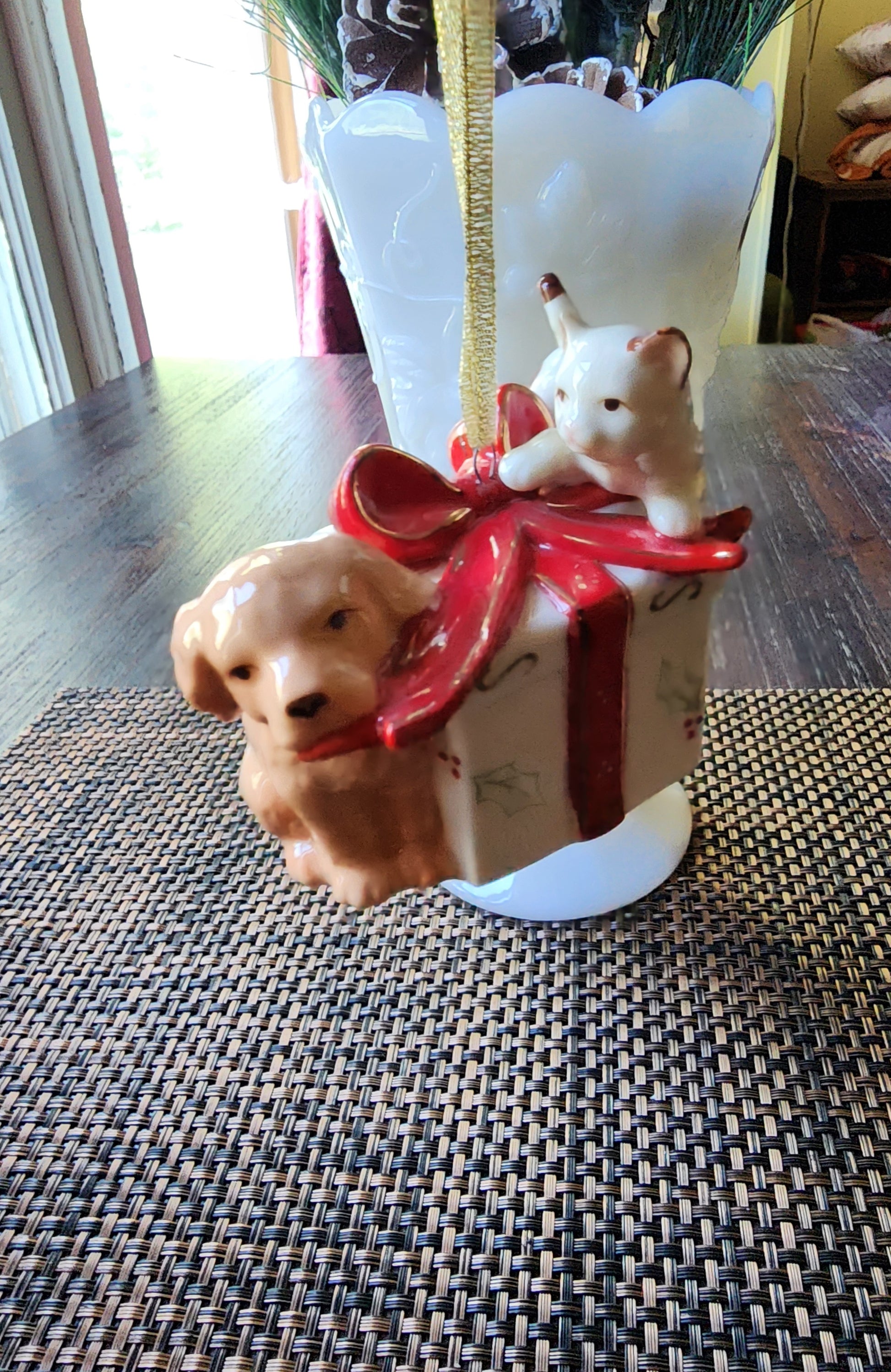Avon 2006 Collectible Dog And Cat In Gift Box Ornament Christmas Decoration