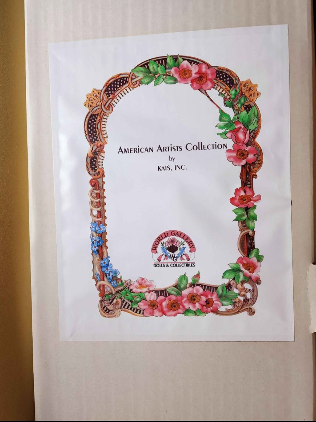 Experience the charm and delicate craftsmanship of the "Jennifer & Little Angel" porcelain doll set by Janice Berard. This collectible ensemble features a beautiful girl doll with curly blonde hair, vibrant blue eyes, and a light complexion, capturing the innocence and joy of childhood. The set is thoughtfully designed, including a baby doll and buggy, adding a touch of nostalgia and playfulness to its vintage appeal. Perfect for collectors and doll enthusiasts, this Caucasian-themed doll is dressed for all occasions and ready to be a cherished addition to any collection. The exquisite material and attention to detail in the design reflect the love and care that went into creating this lovely piece, making it a true gem for anyone who admires the beauty of classic dolls.