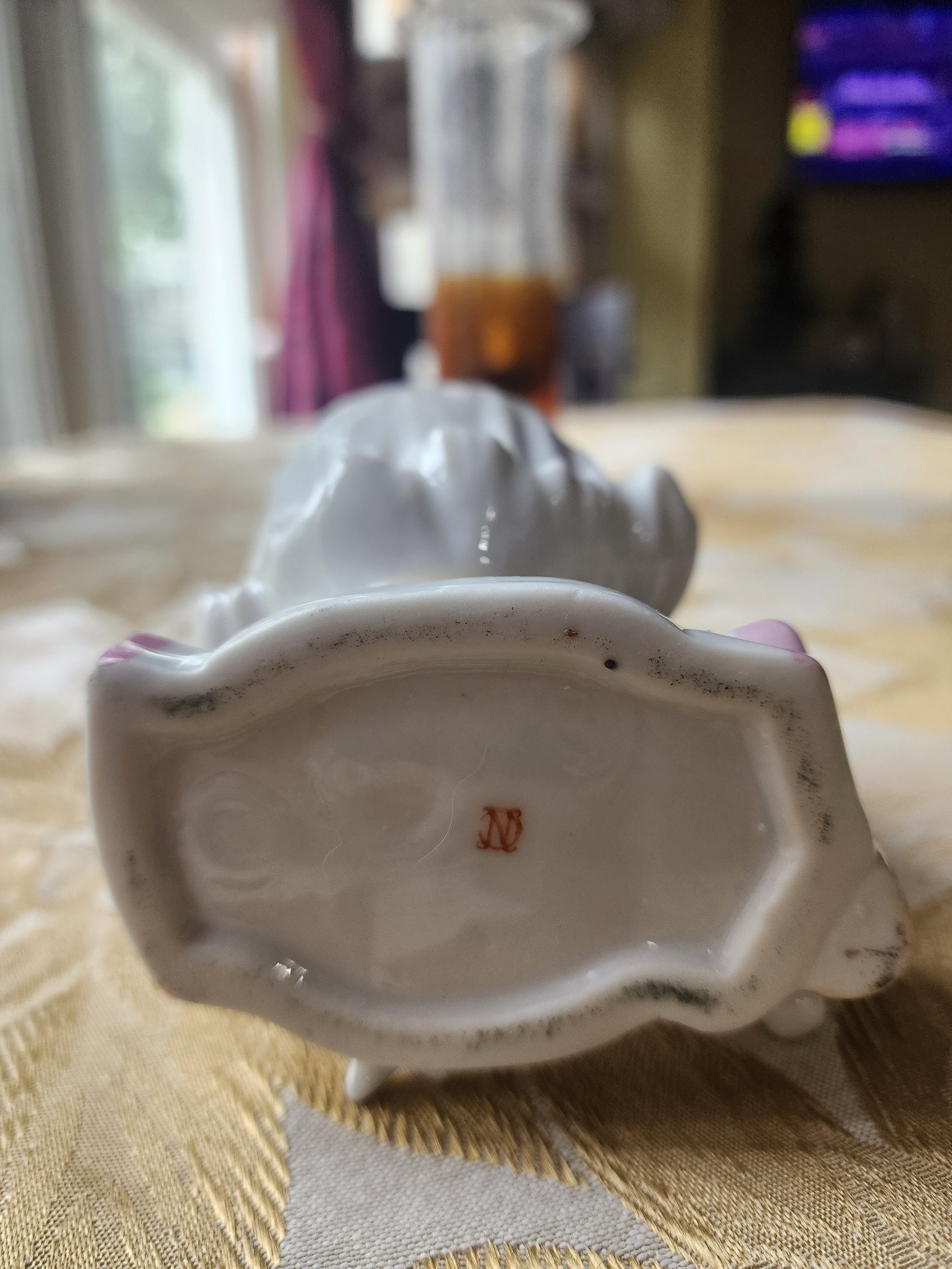 This Vintage Napco Head Vase features a charming girl with a floral crown, bow, and pink and white dress from the 1950s. Made of ceramic with a glossy finish, this mid-century modern piece is adorned with a floral pattern, embodying the style of the era. The elegant design and production technique of pottery add to its appeal, making it a unique and lovely decorative piece for any collector or admirer of vintage pottery.